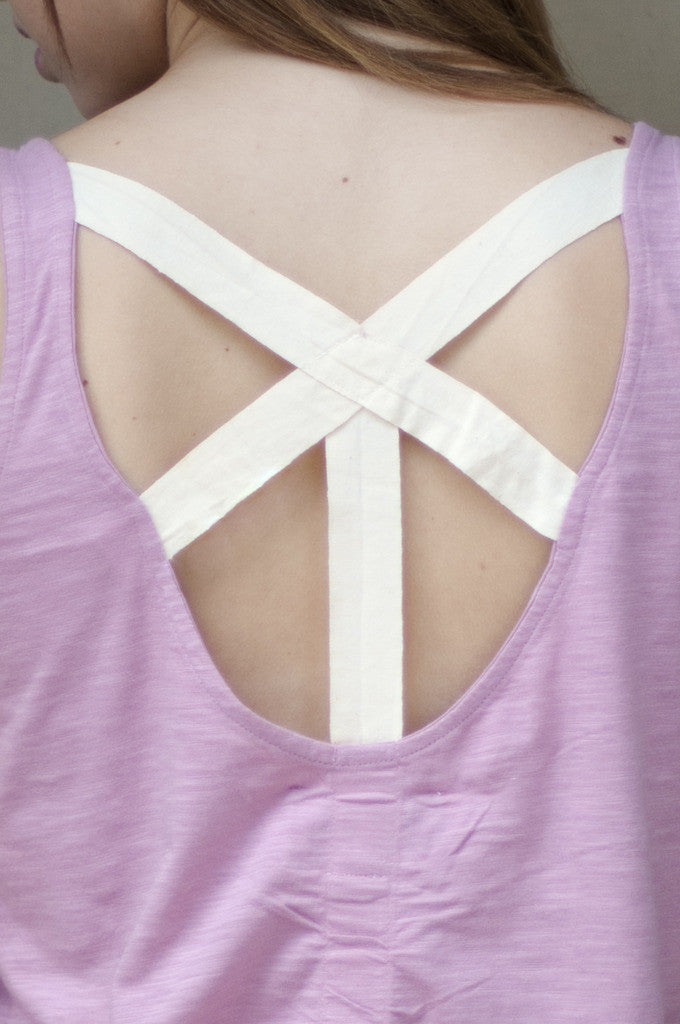 An interesting take on a casual tank, this top by R.P.S Addict features a bold geometric design in the front and vertical ruching and strap detail in the back. The result is a t-shirt tank with an architectural twist, perfect for summer lounging.